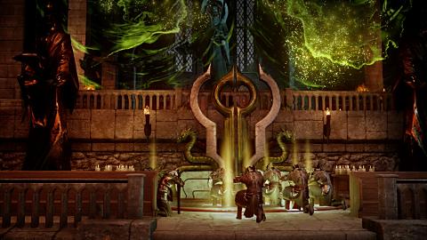 騎士団と魔道師のいずれを選択したかで現れる敵が異なりますが、いずれにせよ諸悪の根源である(DA2のDLでお馴染み?)コリーフィウスに率いられています。そのコリーフィウスは巨大なドラゴンを従えており、すわアーチデーモン襲来かと人々は恐れ戦きます。