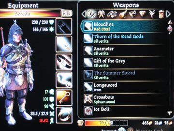今回は出来るだけお金を稼いでみようということで頑張った結果、Landsmeetが終わった段階で金貨465枚。一応Alistairの個人クエストに金貨15枚使い、Redcliffeの兵のために金貨20枚は寄付、Alistairに金貨25枚もするMassive Armorも購入と、幾らかは使っています。不要なアイテムも全ては売り払っていないので、実際には470枚ぐらいにはなったと思います。