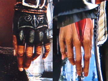 ところで、両手持ち主人公では初回はArishokを割と楽に倒せたのに、再プレイでは結構苦労しました。というのも、Arishokが壁際にいる時に近付いて、うっかり腹に剣を突き刺す技を食らうと、壁を突き抜けて2階に出てしまうことがあるからです。勿論こうなると下に降りられないのでリロードしかありません。後ちょっと削れば、のところで2階へ移動させられると結構泣けます。