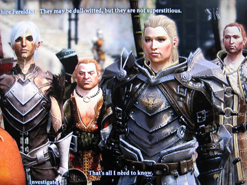 メインクエストとセカンダリクエスト、コンパニオンクエストほか、一見独立した、細々したクエストが絡まっているので、どのクエストがどんなだったか、1回目のプレイでは台詞も全然追えていないのでうろ覚えです。QunariのメイジのクエストとかViscountの息子を連れ戻すクエストとか、第1部終盤だったか、第2部序盤だったか、もう覚えていないという体たらく。何となく、時々の選択が後の状況に影響を与えていそうではありますし、特に選択場面でmageとtemplerのいずれに付くかは、結構大きな影響がありそうです。