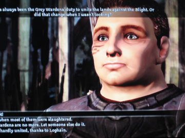 ここが済むと、いよいよLandsmeetが開始され、Loghainとの決闘に持ち込みます。Loghainにはtwo-handedの主人公で正面から勝負しましたが、結構あっさり勝てました。慣れなのか本当にtwo-handedが強いのか。ここでの選択で、Alistairではなく Anoraを王座に就けて、Loghainを仲間にしようと思っていたのに、ついいつも通りAlistairとAnoraを結婚させる選択肢にしてセーブしてしまいました。しまった。